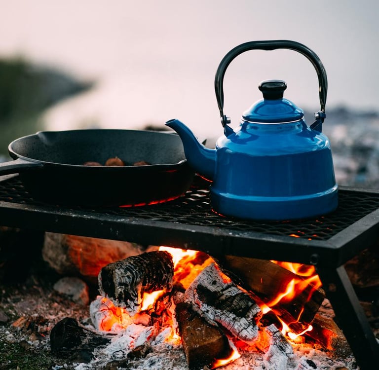Storytelling around the fire, Writing, following instructions, and creating story maps with natural objects.
